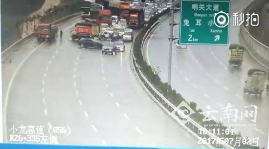 截至中午12點左右,多車相撞事故處理完畢,k2213(關箐)坡頂臨時交通管制得以解除,交通恢復。