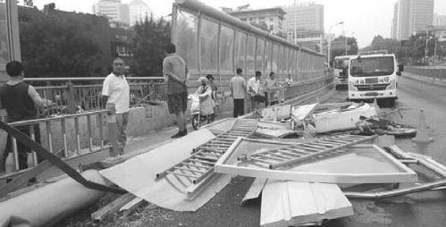 除了海鮮店,旁邊另有三家沿街商鋪也被爆炸波及,門店玻璃等破損。受爆炸影響,現場正對面緯六路高架橋上的三塊隔音板被炸壞,斷裂的隔音板橫在高架橋上,碎裂產生的玻璃碴飛出了20余米遠,可見當時的爆炸威力之大。