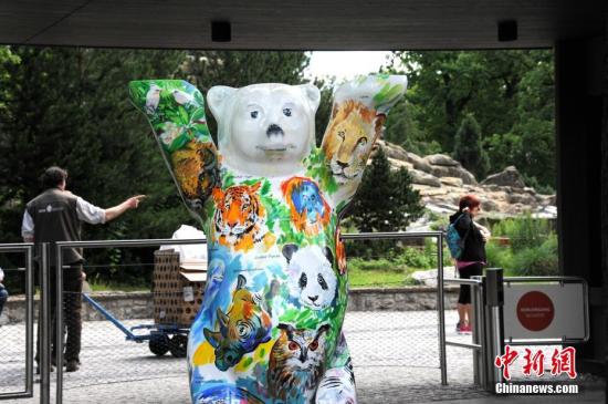 闊別五年后,德國(guó)柏林終于再度迎來(lái)一對(duì)中國(guó)大熊貓。圖為7月4日,柏林動(dòng)物園入口處的吉祥物“柏林熊”繪上了大熊貓的圖案。7月5日,來(lái)自中國(guó)的“夢(mèng)夢(mèng)”和“嬌慶”將正式與德國(guó)公眾見(jiàn)面。中新社記者 彭大偉 攝