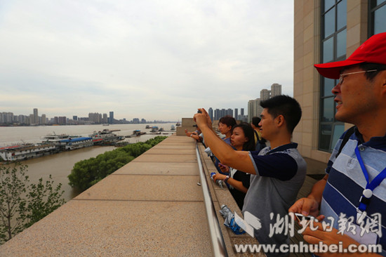 “共舞長江經濟帶——探訪長江經濟帶區域協同生態發展之路”采風團了解武漢“四水共治”情況記者裴斌攝