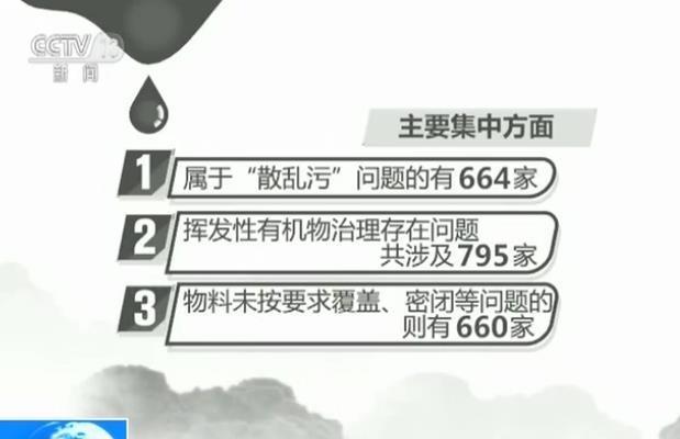 據了解,第六輪次的強化督查從6月23號持續到了7月6號,接受檢查的5879家企業和單位中,有2627家存在環境問題,其中80%以上的問題,主要集中在3個方面:
