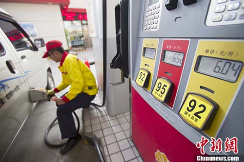 資料圖:山西太原,加油站工作人員給車輛加油。 中新社記者 張云 攝