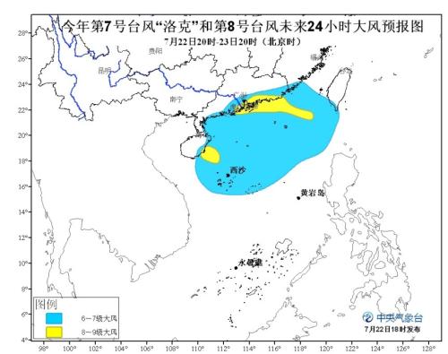中央氣象臺發(fā)布大風(fēng)預(yù)報:22日20時至23日20時,海南島東部沿海、廣東沿海、臺灣南部沿海、南海中部和北部、巴士海峽、西沙群島及附近海域?qū)⒂?-7級大風(fēng),臺風(fēng)中心經(jīng)過的附近海域風(fēng)力可達(dá)8-9級,陣風(fēng)10-11級。
