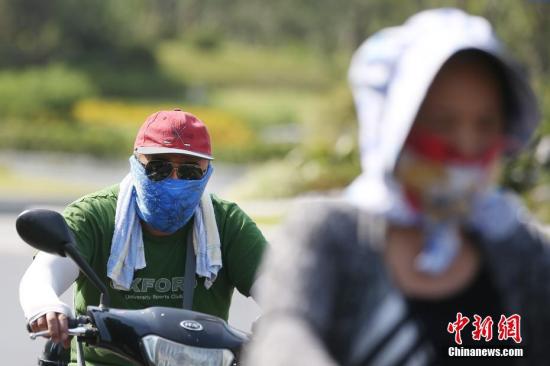 7月24日,將臉部捂得嚴嚴實實的市民經過高溫下的南京街頭。當日,南京市氣象臺發布高溫紅色預警信號。中新社記者 泱波 攝