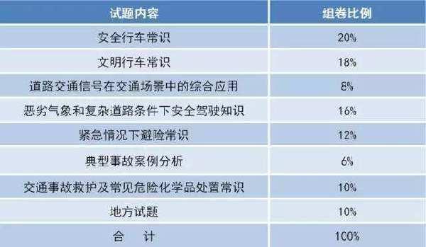 安全文明駕駛常識考試試題內(nèi)容比例