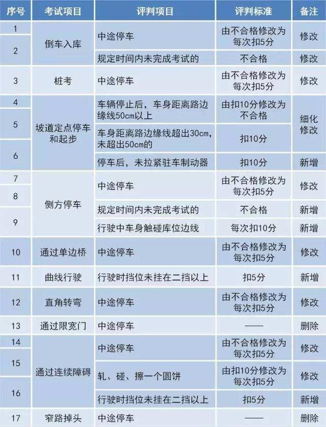 道路駕駛技能考試操作和評判主要修改一覽