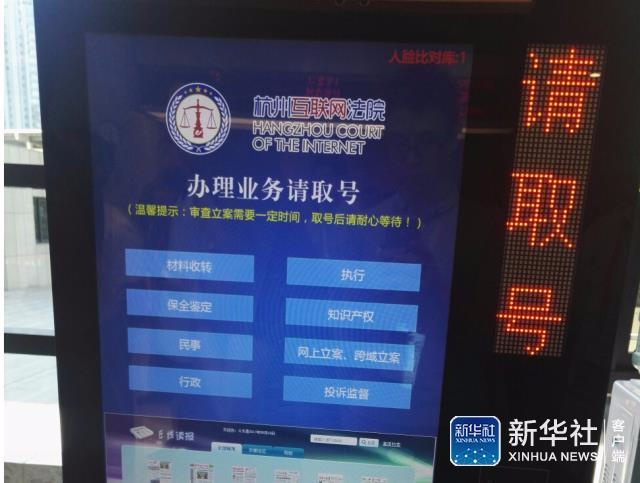杭州互聯網法院有高科技取號機,根據不同的辦理業務分配到不同窗口辦理。