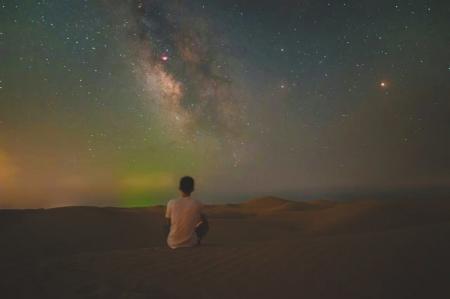 2、騰格里沙漠:除了無邊荒涼的沙漠,干燥的空氣使得這里的天空十分通透,銀河也是非常的明亮絢麗。