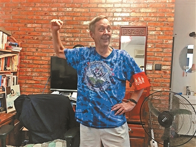 西城區,什剎海,彎彎繞繞的胡同里,住著62歲的美國大爺高天瑞。因為在一段“西城大媽”的宣傳視頻中出鏡,在北京生活了22年的老高走紅網絡。視頻中,老高坦言想成為什剎海區域的治安志愿者——“西城大媽”,并希望自己能夠一直在北京生活。高天瑞告訴北京青年報記者,視頻拍攝結束后,他將“西城大媽”的“紅袖章”隨身攜帶,但“因為還沒有做很多幫助別人的事,所以有點不好意思戴(在衣服上)”。因為工作簽證已經到期,高天瑞現在報了一家教授中文的學校,擁有了學生簽證,但學生簽證9月8日也將要過期。“沒有退休簽證,對我來說很遺憾,我希望能一直留在北京生活,因為這里是我的家。”
