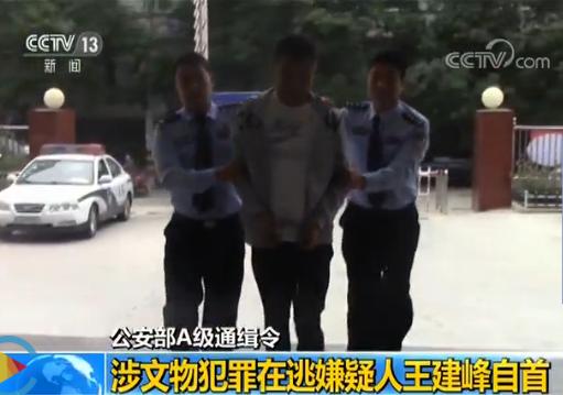王建峰系陜西省咸陽(yáng)市淳化縣公安機(jī)關(guān)正在偵辦的一起重大文物案件的主犯之一。2016年11月10日,陜西省淳化縣公安機(jī)關(guān)對(duì)王建峰作出刑事拘留決定并進(jìn)行網(wǎng)上追逃,此后開(kāi)展了大量摸排、研判、查緝等工作,但一直未能抓獲。7月31日公安部發(fā)布A級(jí)通緝令通緝10名重大文物犯罪逃犯后,淳化縣公安機(jī)關(guān)進(jìn)一步加大緝捕力度,同時(shí)安排民警做其家屬思想工作,督促其主動(dòng)投案自首,爭(zhēng)取從寬處理。在公安機(jī)關(guān)的全力緝捕和工作施壓下,王建峰向陜西省淳化縣公安機(jī)關(guān)投案自首。