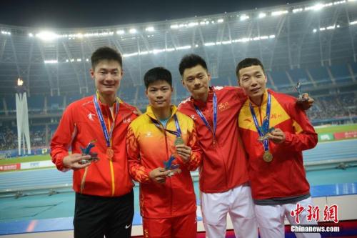 23歲的謝震業本屆全運會收獲三枚金牌,成為全運會歷史上跑步項目的首個“三冠王”。中新社記者 武俊杰 攝