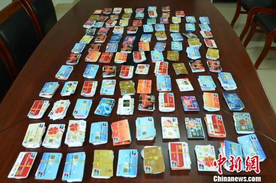 警方繳獲的信用卡等物品。松陽法院供圖