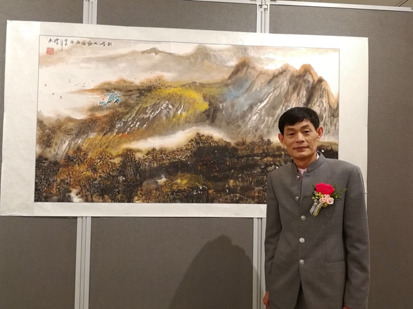 央廣網香港9月14日消息(記者周偉琪) 內地著名書畫藝術家,中國書畫藝術研究會主席盛懷杰的“一脈親兄弟,翰墨滿香江”——慶祝香港回歸祖國二十周年名家書畫展,昨日下午在香港中央圖書館開幕,共展出盛懷杰近期逾百幅書畫作品,以山水作品為主,還有部分花鳥的小品創作。展出的這些以祖國河山為主要題材的作品,用寫意的手法和熱情的筆觸謳歌新時代下國家的進步,贊美生活的幸福美滿。