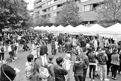 英國倫敦,第三屆英國中國美食節(jié)現(xiàn)場,不少攤位前都排了長隊(duì)。 圖片來源:重慶晨報(bào)