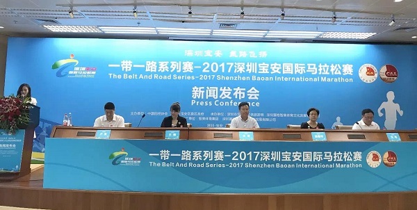 國家體育總局田徑管理中心馬拉松辦公室主任水濤、寶安區人民政府副區長梁敏華、寶安區委宣傳部常務副部長王曦、寶安區文體旅游局副局長盧清、智美體育集團高級副總裁、深圳賽格智美總經理沈偉以及特邀跑團代表、寶馬組委會各職能單位代表共同出席了20日的新聞發布會。2017深圳寶安國際馬拉松賽是由中國田徑協會、深圳市寶安區委區政府共同主辦,深圳市寶安區文體旅游局、深圳賽格智美體育文化發展有限公司聯合承辦。