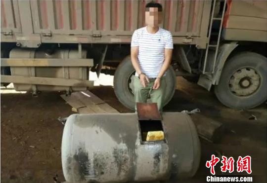 圖為犯罪嫌疑人指認藏在貨車水箱內的毒品。 鐘欣 攝
