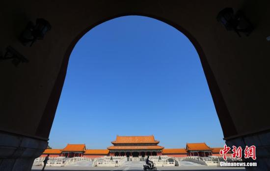 9月18日,故宮博物院工作人員在故宮內(nèi)穿行。中新社記者 楊可佳 攝
