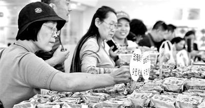 本報訊(記者 李佳)75克蛋月燒抹茶紅豆月餅8元一塊、85克提漿宮餅-冰糖玫瑰月餅7元一塊……在北京老字號稻香村東直門店內(nèi),單獨包裝的小克重月餅今年銷量火爆。據(jù)店家介紹:“單是75克翻毛百果月餅單品一天就能賣上千塊!北本┣嗄陥笥浾呓兆咴L家樂福、華潤萬家超市、北京稻香村、義利食品店等月餅銷售點后發(fā)現(xiàn),今年的月餅變得更加“小、散、輕”了。
