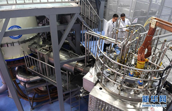 9月27日,工作人員在查看混合磁體裝置現場。新華社記者 劉軍喜 攝
