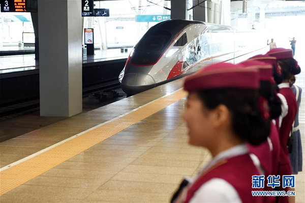 “復興號”G123次列車駛入站臺。新華社記者 鞠煥宗 攝