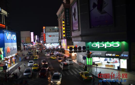 資料圖片:2017年2月27日,廣東省東莞市塘廈鎮手機店鋪夜景。
