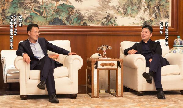 京東集團董事局主席兼首席執(zhí)行官劉強東與海爾集團董事局副主席、集團執(zhí)行總裁梁海山合影