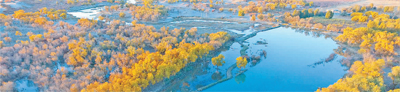 金秋時節,內蒙古自治區額濟納旗胡楊林在陽光中迸發出金色的魅力。 新華社發