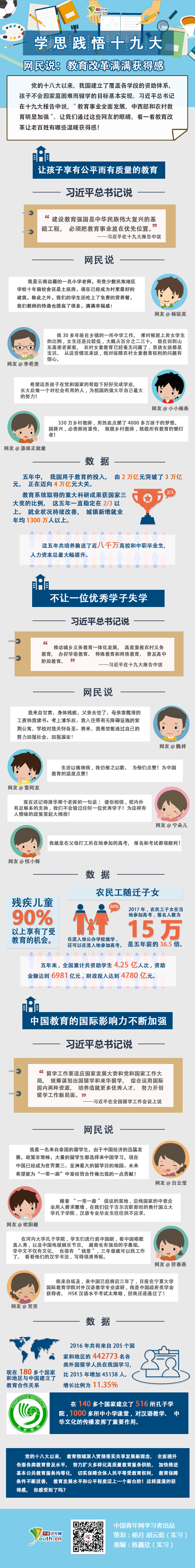 中國(guó)青年網(wǎng)北京12月7日電(記者 楊月 實(shí)習(xí)記者 胡云茹 陳嘉欣)黨的十八大以來(lái),我國(guó)建立了覆蓋各學(xué)段的資助體系,孩子不會(huì)因家庭困難而輟學(xué)的目標(biāo)基本實(shí)現(xiàn)。習(xí)近平總書記在十九大報(bào)告中說(shuō),“教育事業(yè)全面發(fā)展,中西部和農(nóng)村教育明顯加強(qiáng)”。讓我們通過(guò)這些網(wǎng)友的眼睛,看一看教育改革讓老百姓有哪些溫暖獲得感!
