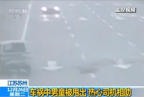 當(dāng)天早上8點(diǎn)多,在蘇州吳江區(qū)的一條馬路上,一輛面包車掉頭的過程中,與對向車道一輛轎車發(fā)生碰撞,面包車失去控制,沖向路邊,結(jié)果車窗內(nèi)突然掉出一個(gè)孩子,在地上翻滾著滑出好幾米遠(yuǎn)。后方一名路過的駕駛員趕緊停車,上前查看情況。
