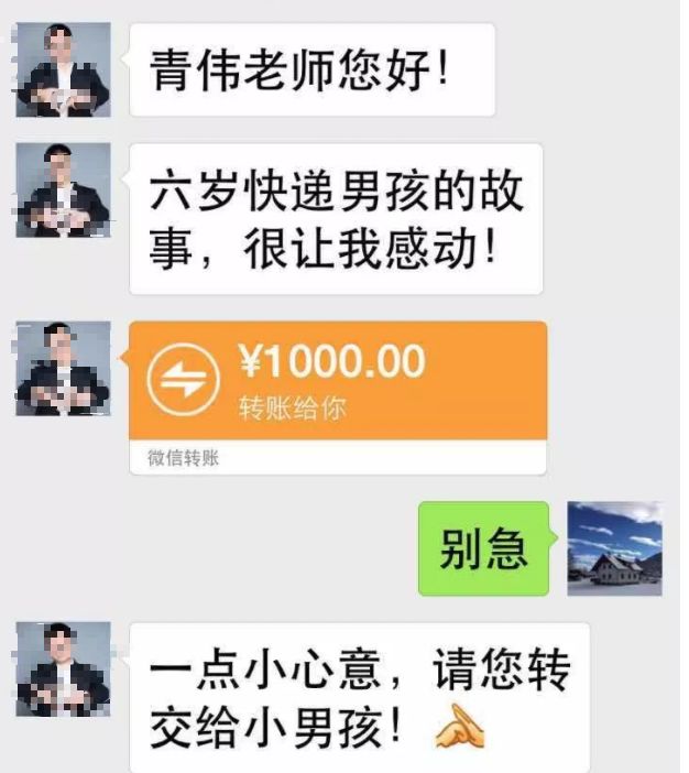 王青偉在個人微信公眾號發(fā)布了探訪這位“快遞男孩”的整個過程。通過朋友圈、個人微信公眾號以及青島音樂體育廣播連線,這個“7歲的快遞小男孩”的事情迅速引起了青島各大媒體的關(guān)注。