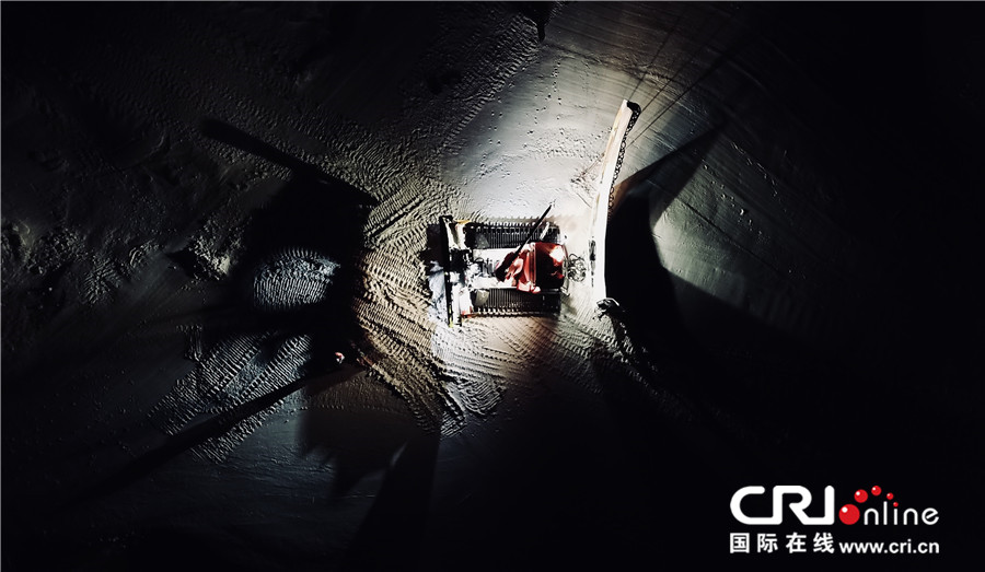 價值數(shù)千萬元人民幣的專業(yè)鏟雪車承擔了U型場地的建造維護工作。(航拍) 攝影:李晉