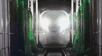 對兩段車頭部位、轉向架等進行再次刷洗。