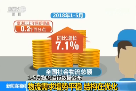 央視網消息:中國物流與采購聯合會今天(28日)公布了今年前五個月社會物流運行數據。1-5月物流需求保持平穩增長,結構進一步優化,物流行業發展勢頭良好。