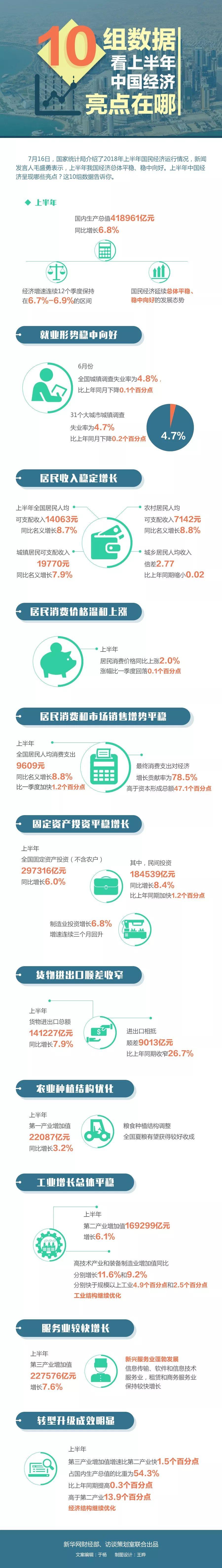 2018年一季度GDP同比增長6.8%,二季度增長6.7%,連續十二個季度穩定運行在6.7%到6.9%這樣一個中高速區間。