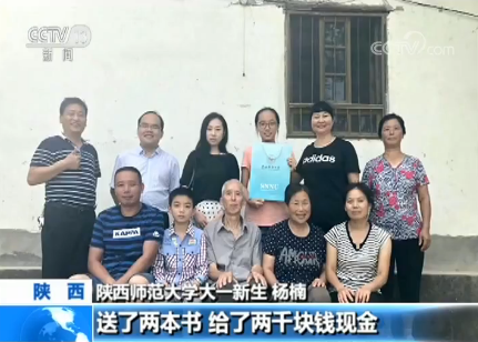陜西師范大學(xué)地理科學(xué)與旅游學(xué)院大一新生 楊楠:送了兩本書,給了兩千塊錢現(xiàn)金,感覺很溫暖比較感動。學(xué)費住宿費全免,每個月還會收到600塊的生活費補助,生活上面沒有什么壓力,現(xiàn)在就是好好讀書。