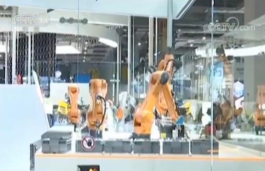 記者:“在現場,這家來自德國的企業搭建了一個小型的智能工廠。在這個裝配臺上,機械手臂將聯合作業,向觀眾展示機器人生產的靈活、高效和精密。”