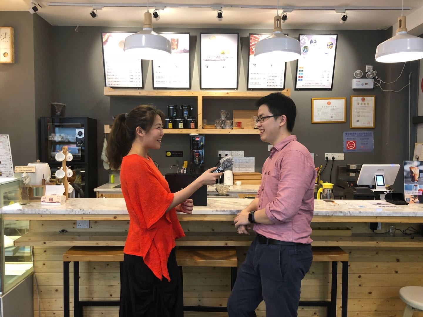 記者采訪翹鼻子咖啡創始人吳森勝