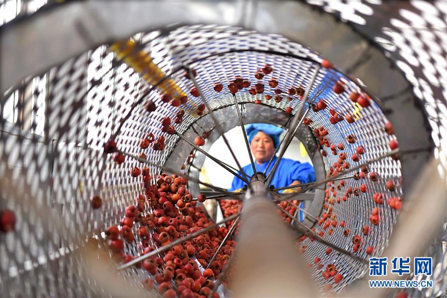 一名婦女在山東省淄博市沂源縣悅莊鎮一家果品企業扶貧車間勞作(12月4日攝)。新華社發(趙東山 攝)
