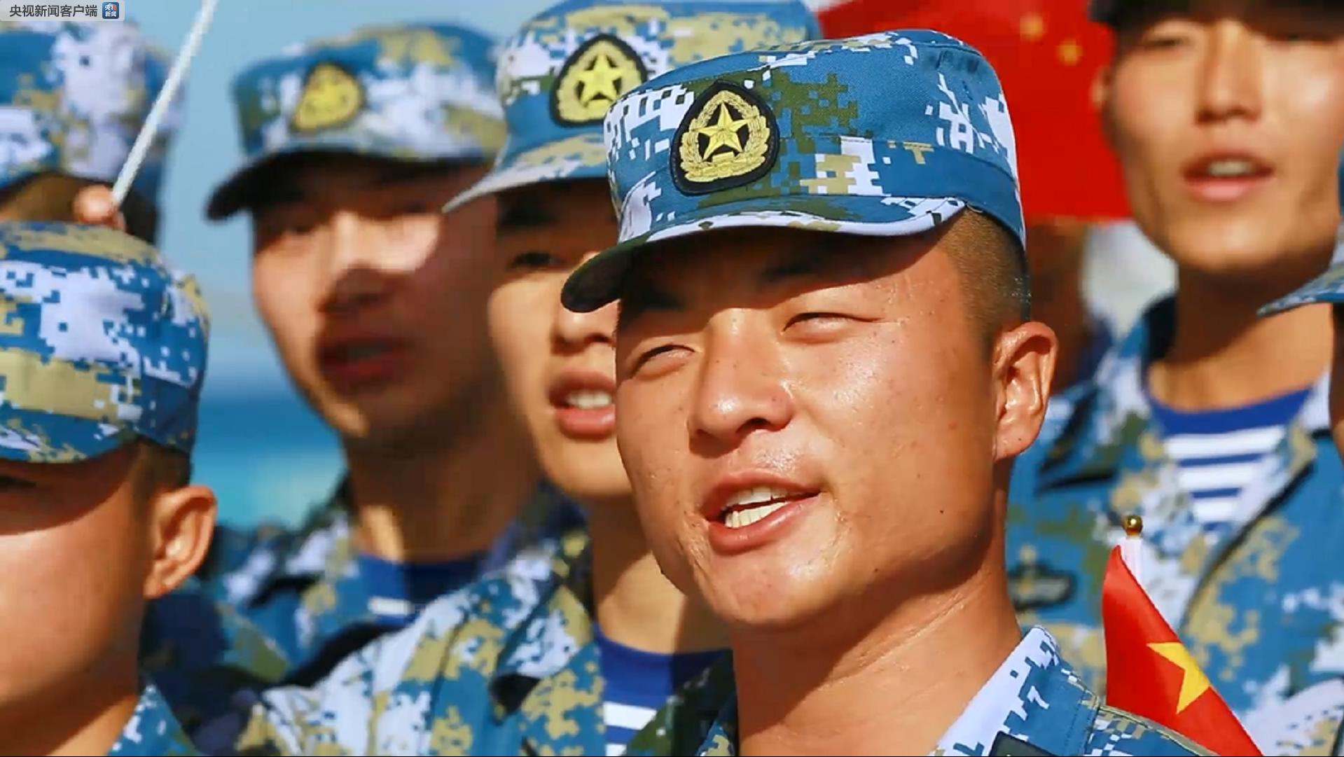 “我和我的祖國,一刻也不能分割。無論我走到哪里,都流出一首贊歌。”三沙海軍戰士李宗霖領唱歌曲。接著,三沙駐島戰士從遠處走來,齊聲高歌,意氣風發、豪情滿懷地歌唱,表達了對祖國的眷眷深情。