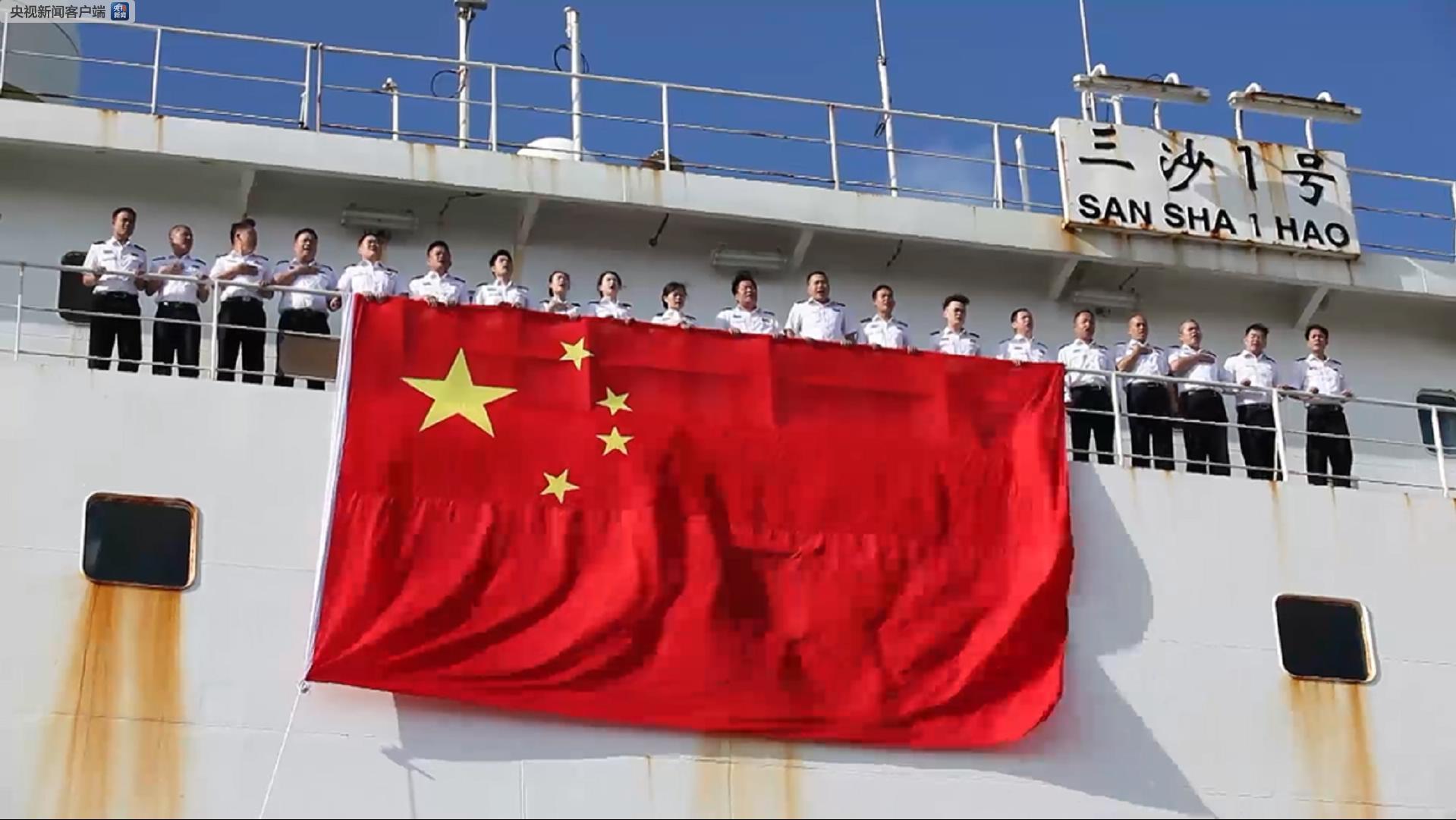 三沙市永興學校小學生胡楚涵和她的同學們、三沙衛視主持人團、“三沙1號”船工作人員、駐島工作人員、漁民依次加入演唱,清脆稚嫩的童聲與深情的歌聲交融,伴著海風,伴著朝陽,這專屬于中國人的旋律緩緩流淌。激昂的歌聲、揮動的國旗將碼頭渲染成了激情澎湃的“紅色”海洋,讓在場的每顆中國心都熱血沸騰。