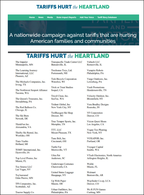 路透社則在報道中進一步介紹說,這封600多家美國企業寫給特朗普的信,源自一項名為“關稅損害美國核心領域”(Tariffs Hurt the Heartland)的活動。該活動是由美國150多個代表農業、制造業、零售業和科技產業的行業組織共同發起的,旨在要求美國特朗普政府停止揮舞關稅大棒的錯誤行為,及早結束貿易沖突。