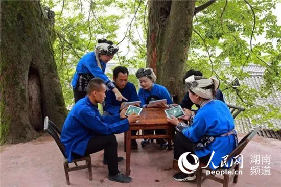 湘西電大副校長龍曉穎(左二)指導農民大學生利用學習PAD進行小組學習。湖南廣播電視大學供圖