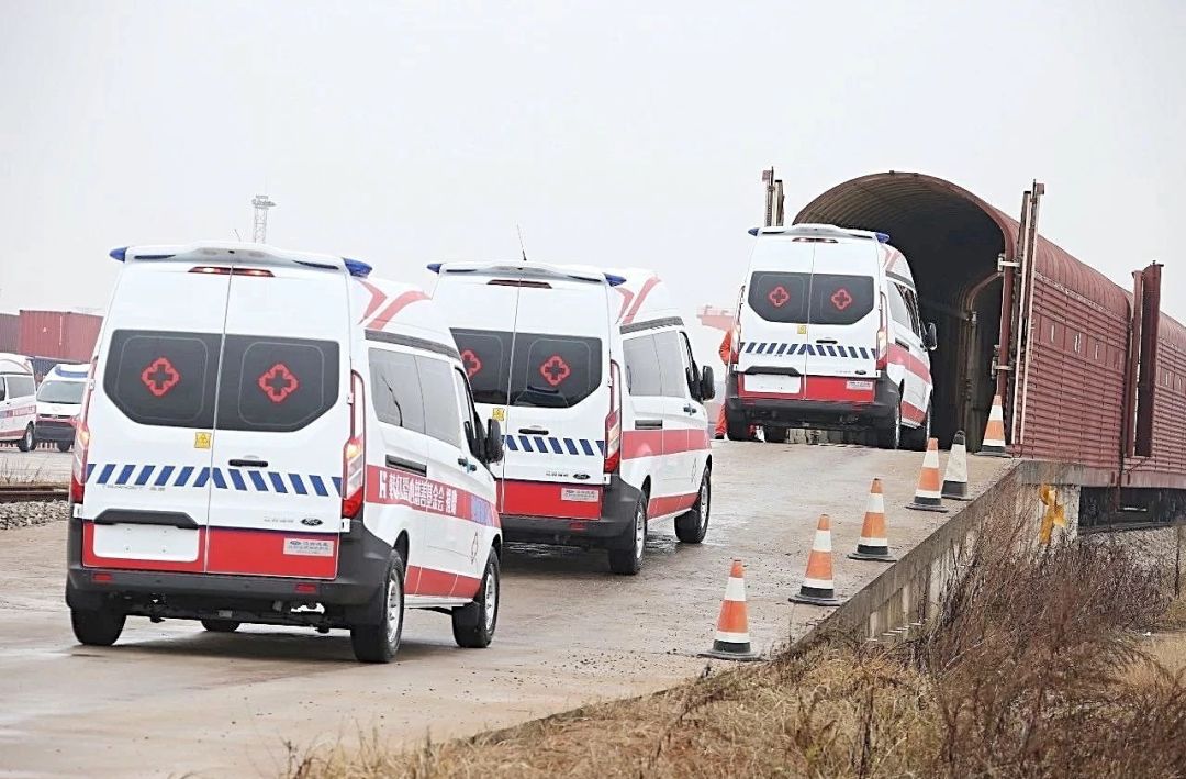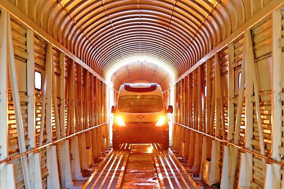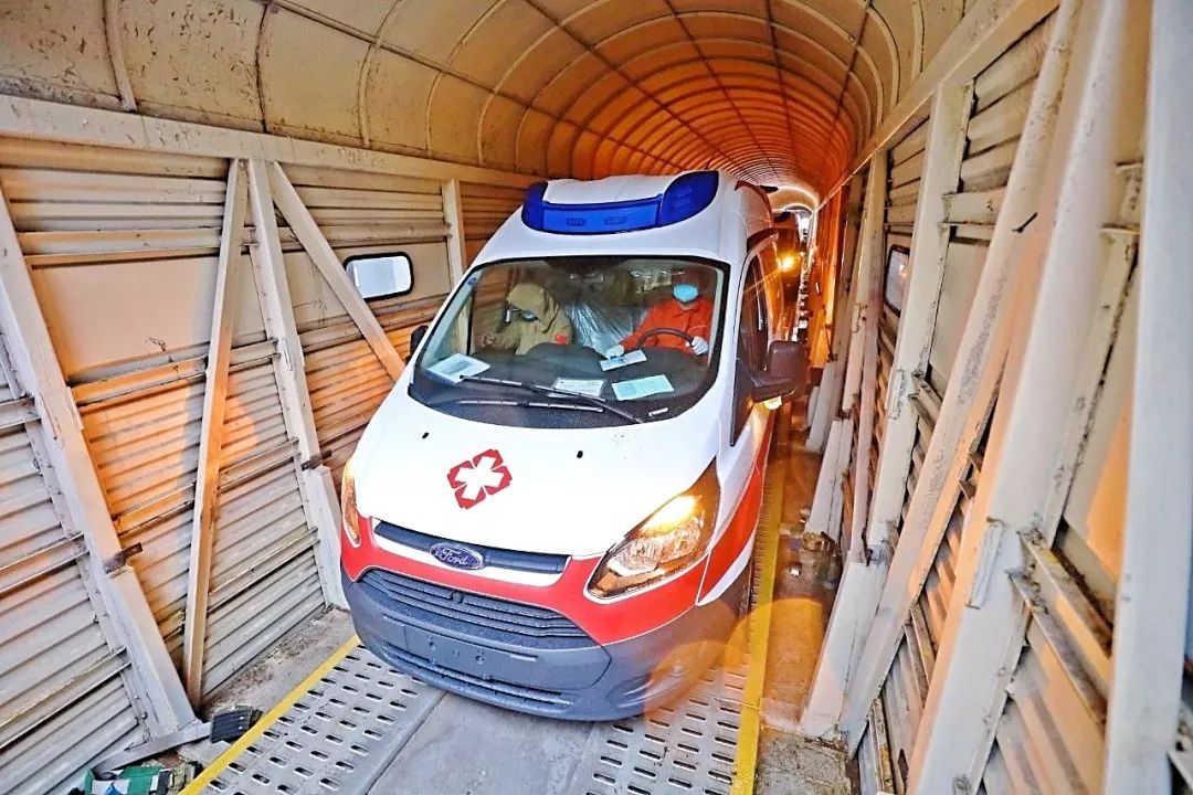 本次運輸救護車使用中鐵特貨JSQ5型車,是專門為運送大中型車輛定制的,全程無需押運,避免了司機地跑、交付、往返環節可能引發的交叉感染風險,大大提升了運輸過程中器材和人員的安全性。