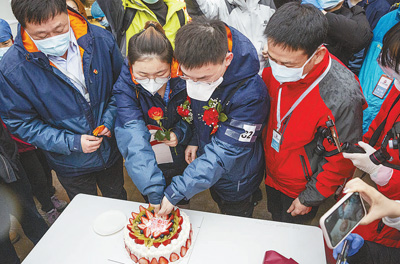 本報(bào)武漢3月1日電 (姜泓冰、張赫、葉佳琪、莫佳瑜)2月28日17時(shí)左右,一場(chǎng)特殊的婚禮在武漢雷神山醫(yī)院辦公區(qū)舉辦。在醫(yī)務(wù)人員的見(jiàn)證下,上海交通大學(xué)醫(yī)學(xué)院附屬仁濟(jì)醫(yī)院肝移植監(jiān)護(hù)室25歲的于景海護(hù)士和消化科24歲的周玲億護(hù)士,舉辦了他們僅用了15分鐘的、簡(jiǎn)單而溫馨的婚禮。