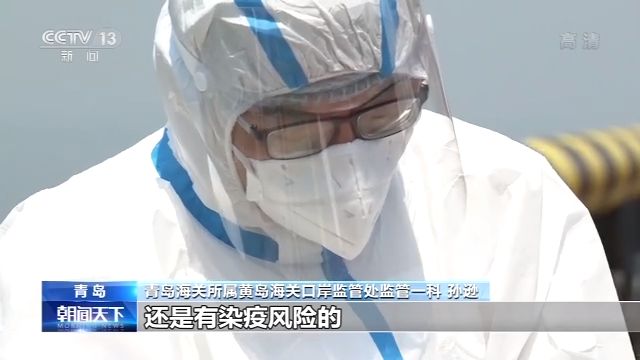 青島海關所屬黃島海關口岸監管處監管一科 孫遜:在檢測結果沒有出來之前,我們認為這條船上的船員還是有染疫風險的,所以說我們做好防護也是對自己的一種保護。