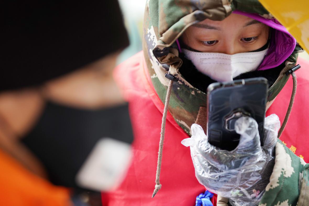 1993年出生的李文琦,是在深圳工作的哈爾濱人,春節(jié)返鄉(xiāng)回哈后成為社區(qū)志愿者。她說:“國家有難,我們‘90后’正值青年,身強(qiáng)力壯,應(yīng)該往前沖。”圖為李文琦(右)在檢查往來車輛人員的手續(xù)證明。新華社記者 王建威/攝