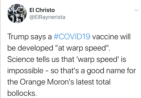 美國網(wǎng)友:急于生產(chǎn)疫苗很危險(xiǎn) 科學(xué)告訴我們 "曲速"不可能