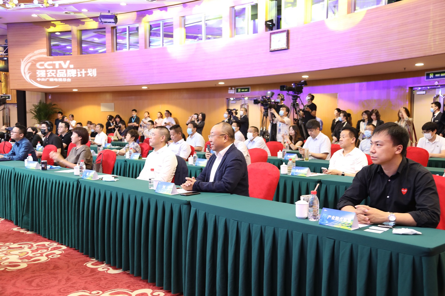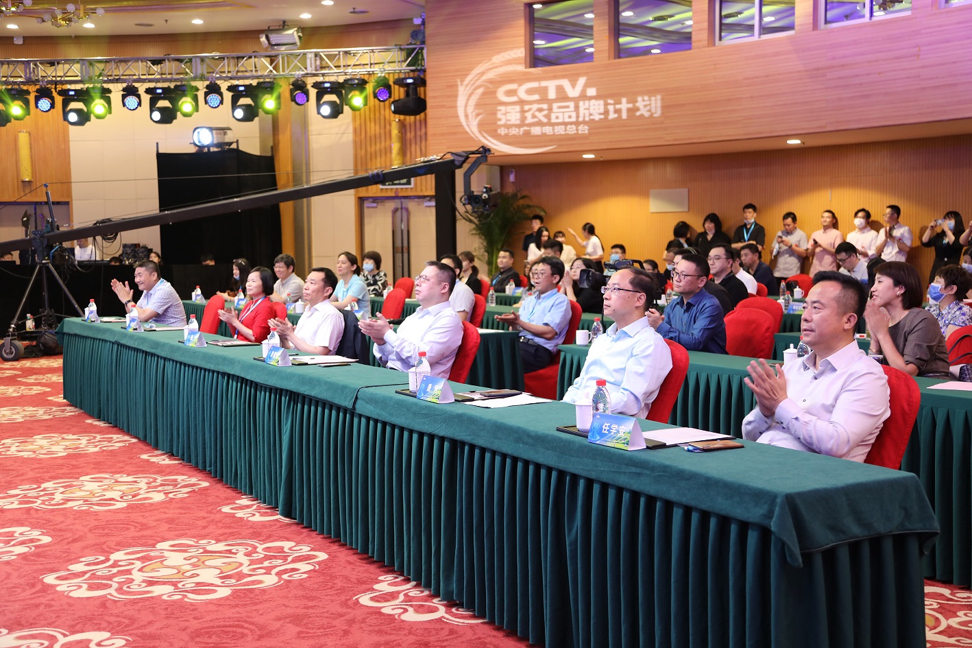張寧、彭健明、唐珂、張國飛、任學安、王曉斌、胡曉云、王鈞現場啟動“CCTV強農品牌計劃”,共同開啟品牌強農、品牌富農的新征程。