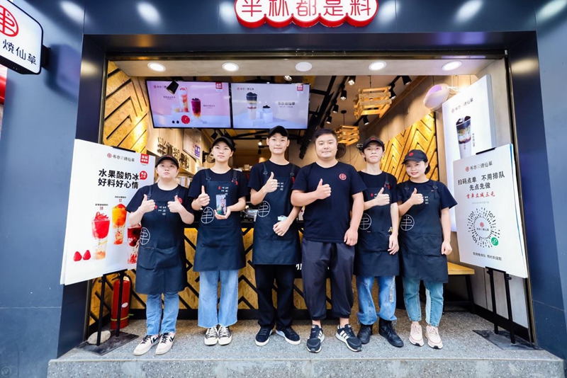 晴隆縣商戶“書亦燒仙草”的店主及店員(央廣網(wǎng)發(fā) 美團供圖)