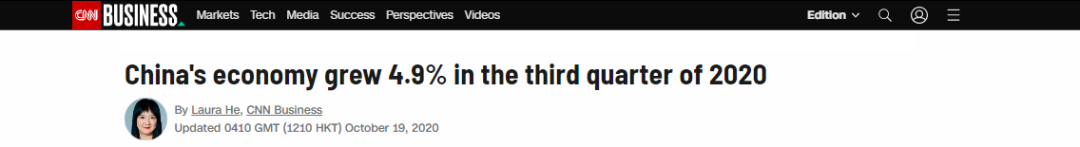 美國(guó)有線電視新聞網(wǎng)報(bào)道,與其他還在同新冠肺炎疫情做斗爭(zhēng)的國(guó)家相比,中國(guó)相對(duì)迅速地恢復(fù)了經(jīng)濟(jì)。中國(guó)實(shí)施了嚴(yán)格的措施來(lái)控制疫情,并加大了基礎(chǔ)設(shè)施建設(shè)領(lǐng)域的投資,今年前九個(gè)月的GDP同比增長(zhǎng)0.7%。